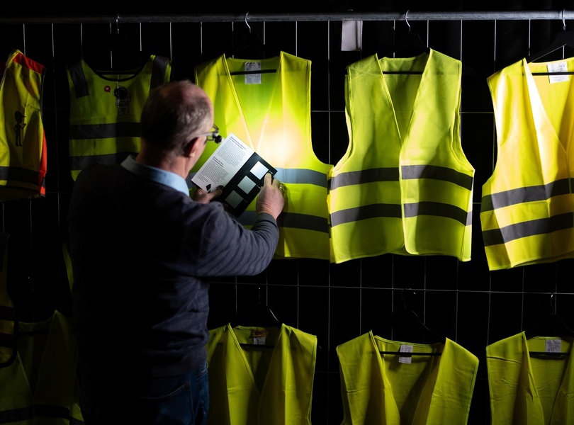 mid Groß-Gerau - Fünf von 14 Warnwesten fielen schon beim Leuchtkraft-Schnelltest durch. ADAC / Viktor Schwenk