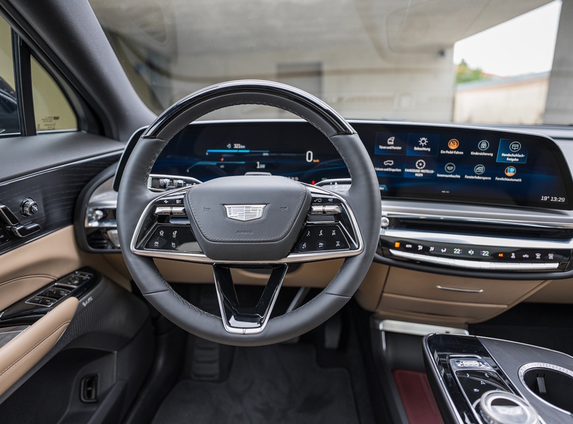 Das moderne Cockpit, das von einem 33-Zoll-Screen dominiert wird, streckt sich vom Fahrer aus bis weit in die Mitte Foto: Cadillac