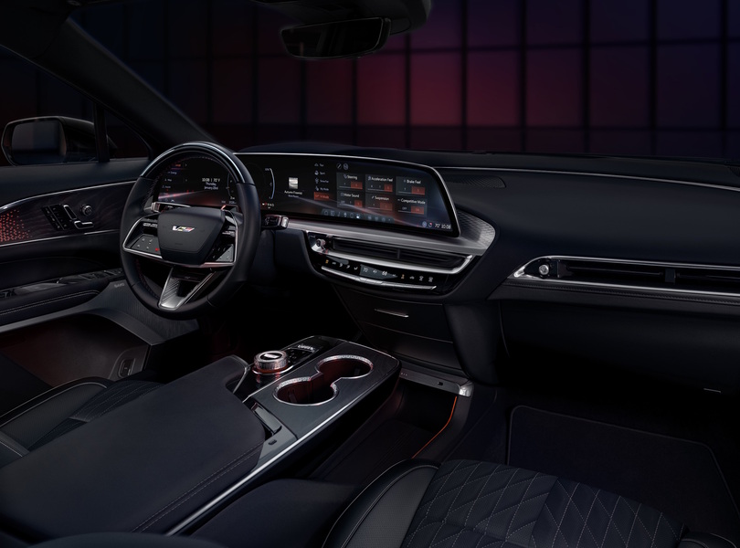 Unter anderem zeugt ein V-Logo im Lenkrand vom gehobenen Leistungspotenzial des Lyriq-V Foto: Cadillac