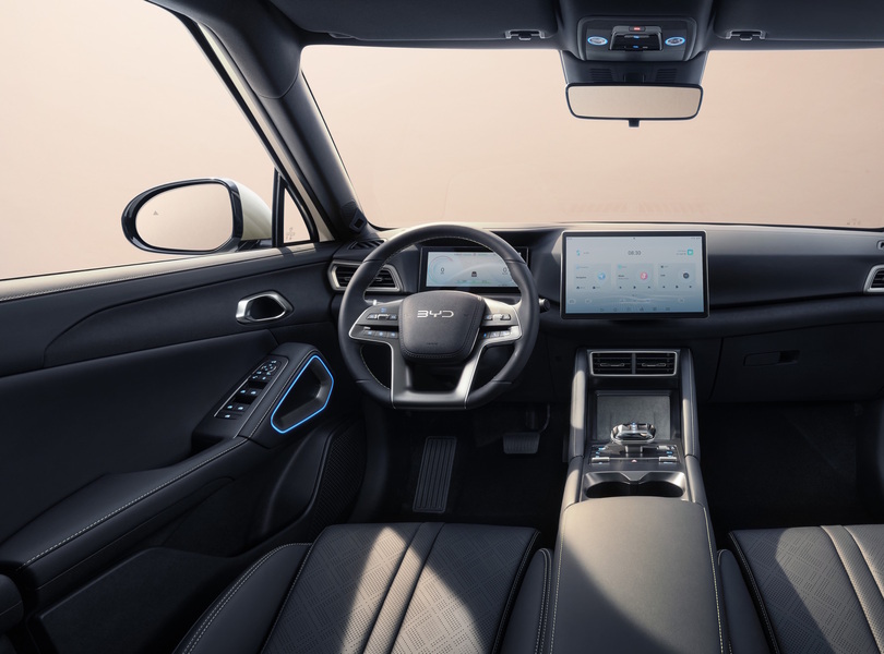 Aufgeräumt und digital: der Arbeitsplatz im BYD Atto 2 Foto: BYD