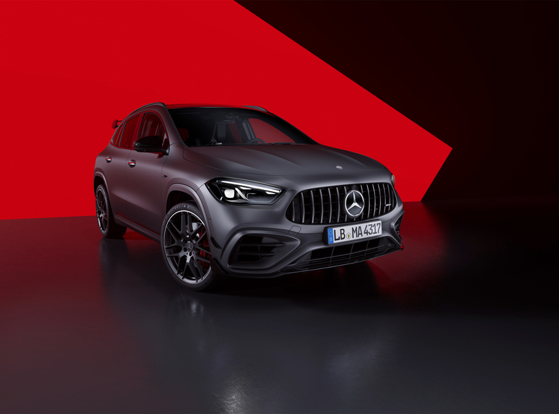Das Kompakt-SUV GLA 45 S 4Matic+ erhält von Mercedes-AMG optische und technischen Neuerungen an Exterieur und Interieur.