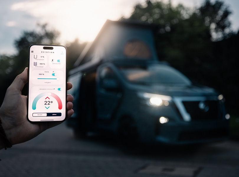 mid Groß-Gerau - Durch die Steuereinheit von Revotion können praktische Funktionen, wie Licht, Heizung und Klimaanlage, direkt per App aus der Ferne bedient werden. Nissan