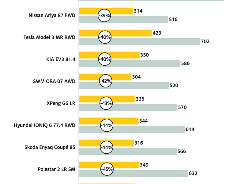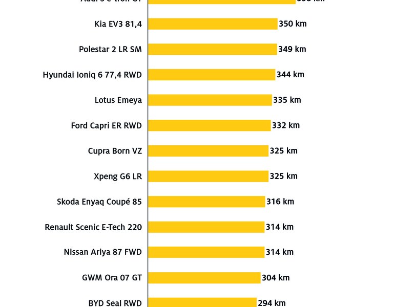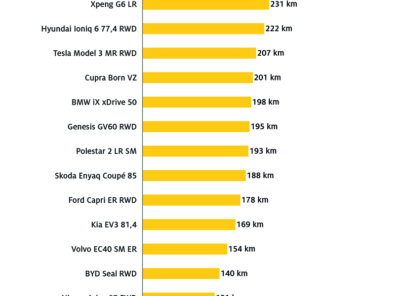 Mehr als 500 Kilometer mit einer Akkuladung haben nur drei Testkandidaten erreicht Foto: ADAC
