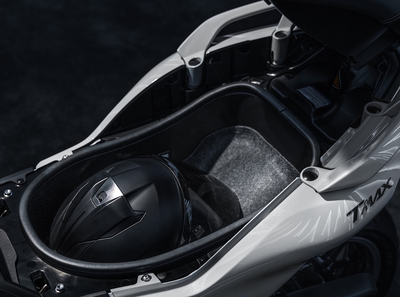 Unter der Sitzbank des TMAX lässt sich auch ein Integralhelm verstauen Foto: Yamaha