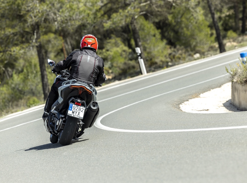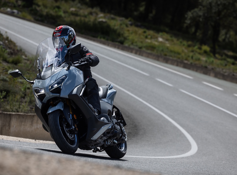 Der mit 219 Kilogramm recht leichtgewichtige Maxi-Sportroller absolviert selbst achterbahnartige Kurvenkombinationen gleichermaßen agil wie souverän Foto: Yamaha