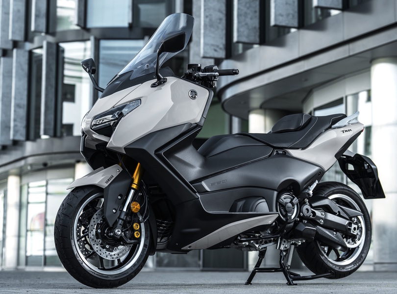 Yamaha bietet seinen neuen Maxi-Scooter in der Grundversion TMAX oder in der besonders gut ausgestatteten, ansonsten aber identischen Edelversion Tech Max an Foto: Yamaha
